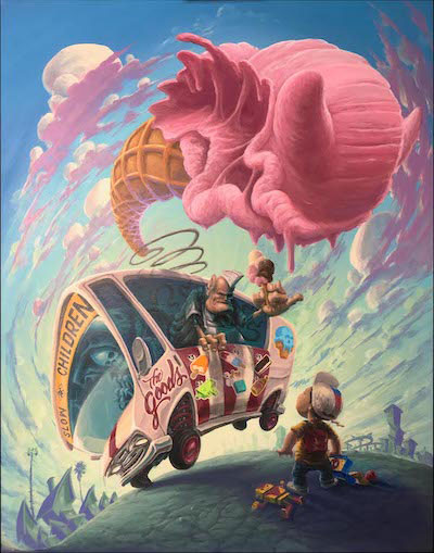 “My concept is about Innocence decimated by the guise of things designed for children that could lead to potential harm or adversity - like Ice cream! I paint the dichotomy of innocence, and that which strips us of that innocence. I try to portray that in a playful way that would cause one to raise a questionable brow.” With a wide-reaching body of work that combines visceral energy, mysticism, sci-fi, and surrealism in a mind--altering detailed and dynamic fusion of color, emotion and whimsy, TEWSR is sure to cause many brows to be raised throughout his artistic career. Want to see more work? Visit TEWSR at Omni, Click Here. ________________________________ Author Dale Youngman is an independent art curator, fine art dealer, marketing consultant and art writer, working to facilitate the flow of art in Southern California. She currently consults with artists, galleries, interior designers, non-profits, and a new art platform to advance business for everyone in the art world. She has twice been honored by the LA Mayor’s Office with “Certificates of Recognition“ for her many years of art advocacy. Find Dale at her website.