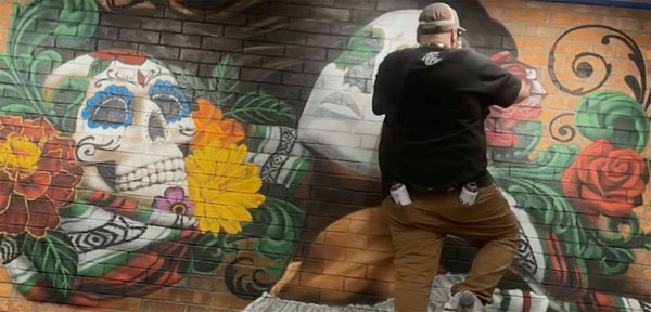 With well-over 200 murals and public artworks under his tool belt, his variety of mad skills and techniques has led him to high-paying commissions for murals around the world, with public art projects in Manchester UK, Tokyo, Japan, Vancouver, Canada , Sao Paolo, Brazil and Paris, France. His high-profile works include painting graffiti on stage for the filming of Mickey Mouses’ 90th Birthday Special, working on a huge mural for a Marvel Comics Captain America movie, and painting live for Lexus at the LA Auto Show.