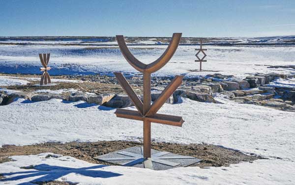 Her largest work to date is 'Totem Triad' (2022), a sculptural installation on an expansive stretch of land in east Aurora, Colorado. Visible from the parkway, three large concrete and steel sculptures sit nestled among an eight-pointed structure of carved stones. Together, the components are arranged according to celestial bodies. After working on the piece as a private commission, the original buyer fell through. Rather than abandoning the project, Solberg successfully kept the project alive until a new collector was found.