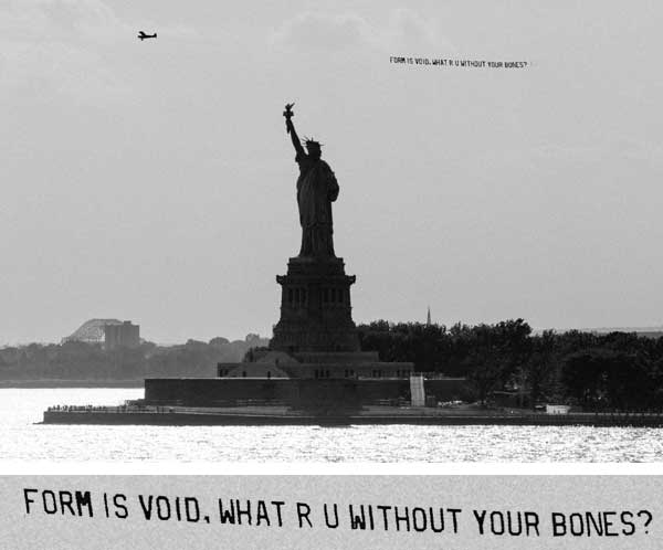 Today in pop culture, we hear about the 'pioneer women,' the other sex who faced great strife with grit in the American expansion westward. I believe multidisciplinary artist Lisa Solberg is a Western woman; she certainly acts like it. The words that flew above Manhattan were an assertive reaction. While the country was experiencing a crisis of meaning after the worst pandemic since the Great Influenza of 1918, with record low trust in institutions, the loss of consensus reality and a worsening identity crisis, Lisa Solberg was charting a path forward, to turn inward for meaning and to project outward with confidence. Her “Message in the Sky” (2022) was a bold gesture.