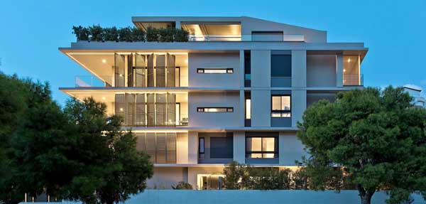 Glass Panes Interlock Between Concrete Slabs Residential Development In Athens' Suburbs