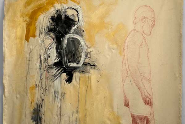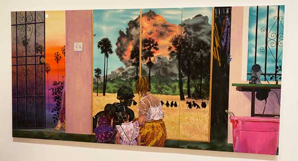 Scenes from the 2021 fatal shooting incident on Alec Baldwin’s film set reimagined at Marseille fair ; Alex Margo Arden’s paintings at Art-o-rama raise questions about the responsibility of artists when depicting tragic real-life events