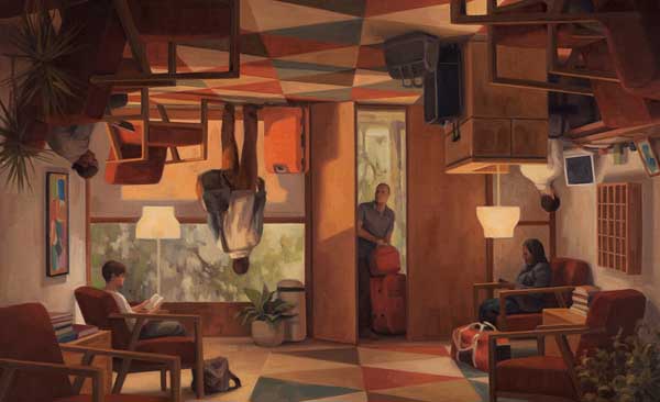 Everyday Activities Revolve Around Interiors in Cinta Vidal’s Dizzying Oil Paintings