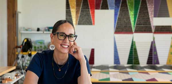 Thin Strips of Colorful Vinyl Spill Over Derrick Velasquez ’s Wooden Sculptures