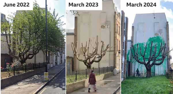 Banksy: Artist Confirms New London Tree Mural Is His Own Work ... ... Update: Banksy's Urban Tree Artwork Defaced With White Paint